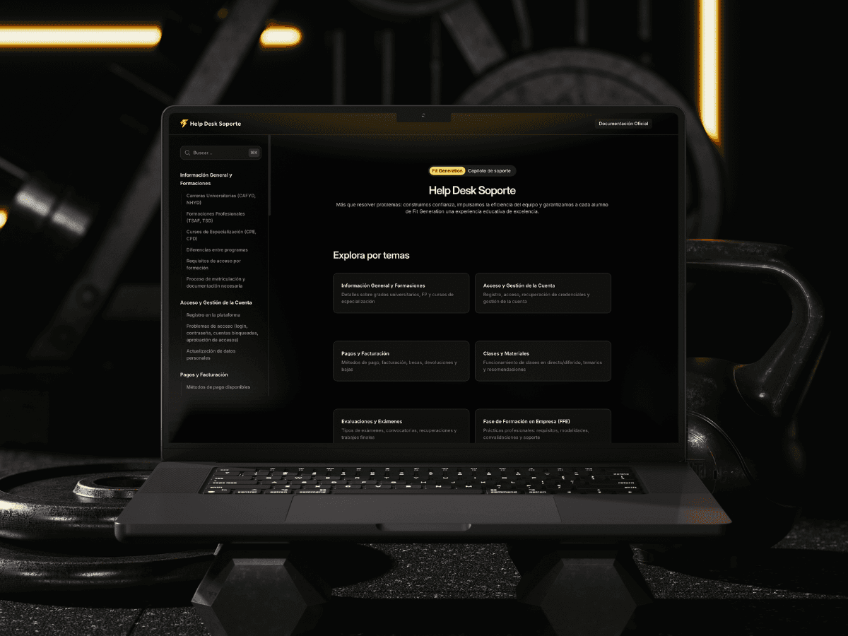 The project began with the development of a Help Desk platform for both the sales and support teams, streamlining internal workflows and centralizing knowledge. This solution was built using Framer and supported by AI Workshops, enabling faster access to information and more efficient team performance.