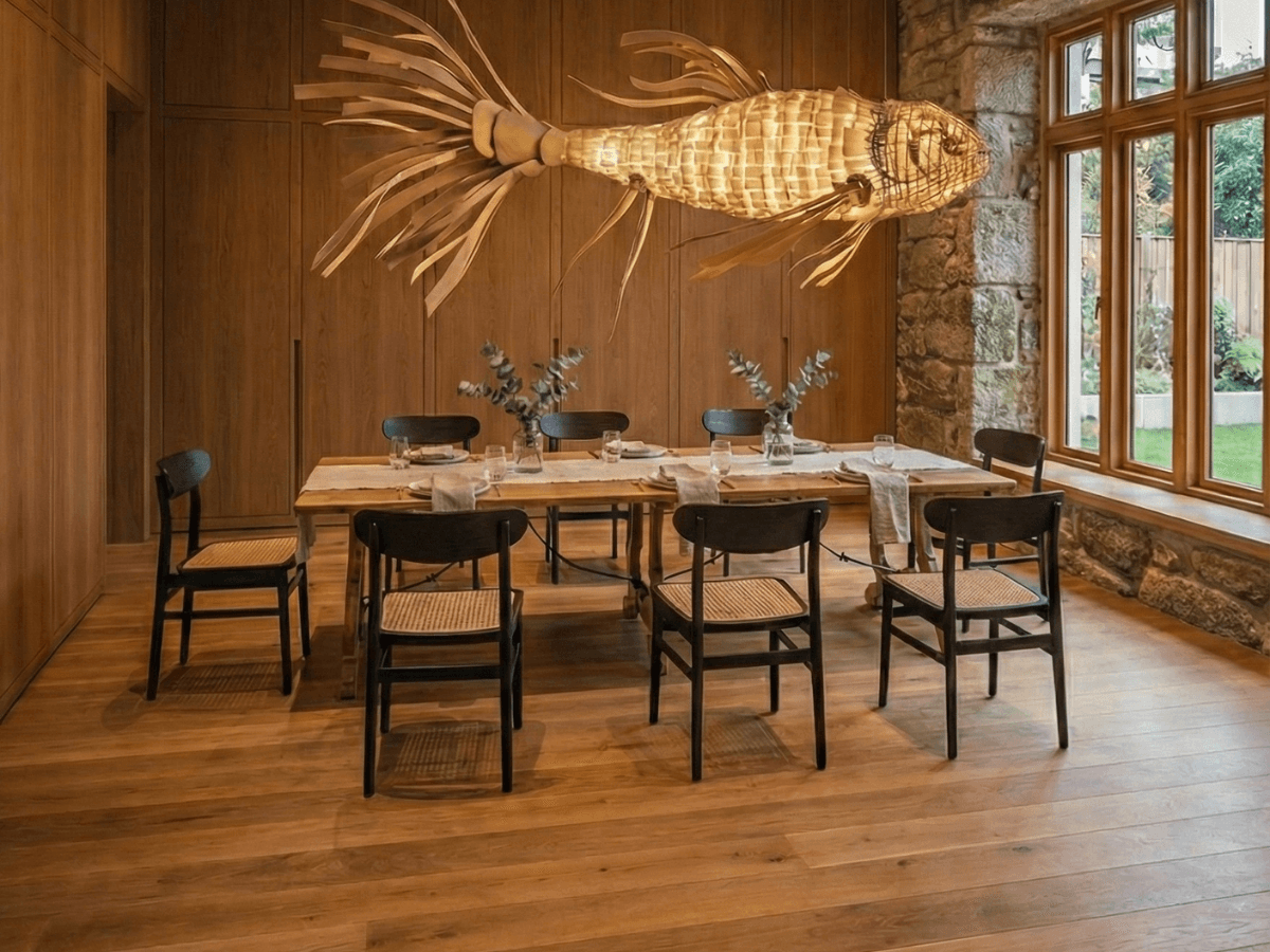 Its ebonized ash structure and hand-woven rattan seat reinterpret traditional craftsmanship through a contemporary lens. The curved backrest echoes the lines and resonance of the instrument, inviting not only to sit, but to listen to the wood itself.